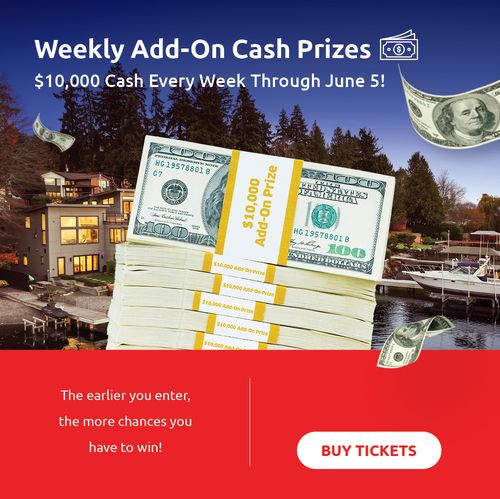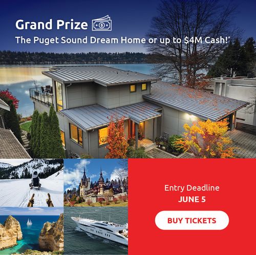 Welcome to the 2026 Dream House Raffle! Enter for your chance to win a Lake Washington Dream Home or up to $4M*, exciting vehicles, unforgettable vacations, big cash prizes, sport tickets, and gift cards—plus plenty of bonus and Add-On drawings. The earlier you enter, the more chances you have to win. Check out all the ways to win and get your tickets today!
